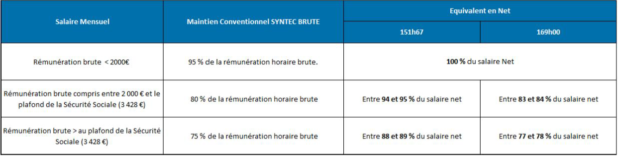 ● L’état prend en charge l’indemnisation jusqu’à 70 % du salaire brut sur une base hebdomadaire de 35h00 ,