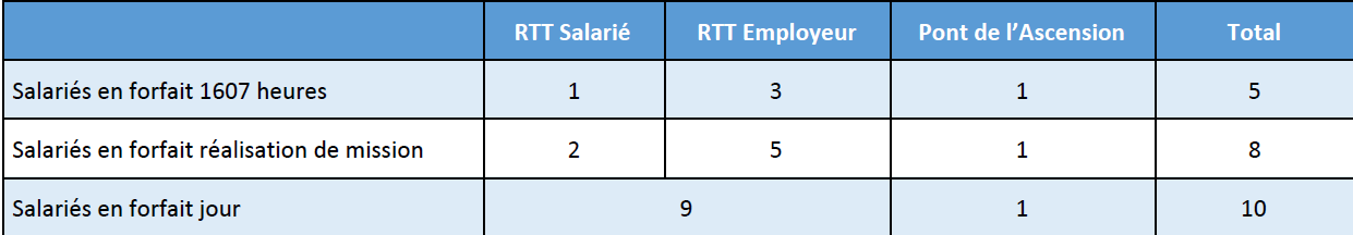 Rappel : CAPGEMINI peut imposer des RTT dans la limite du tableau ci-dessous. Si votre manager vous a imposé plus de